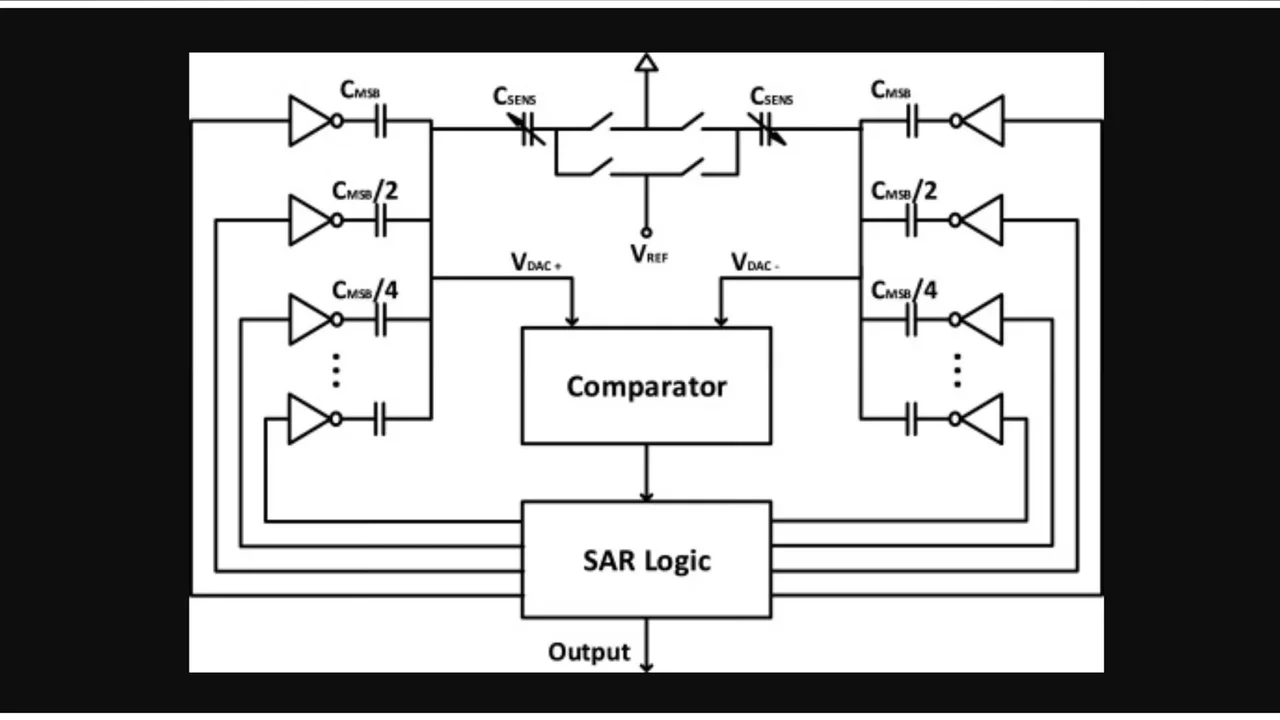 Abdulaziz Alhoshany, et al., " A 45.8 fJ/Step, energy-efficient, differential SAR capacitance-to-digital converter for capacitive pressure sensing". Sensors and Actuators A: Physical, 245, 2016, 10.
